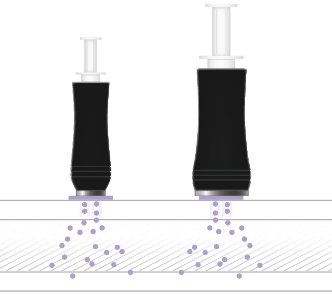 A particular electric spiking system generates an impulse which produces a temporary increase of the permeability of the cellular membranes producing the so-called electropores. This non-invasive and painless technology, that could be defined as a “virtual syringe”, allows the transdermal delivery of active ingredients through the electropores without needles, granting high concentration and effectiveness only on the target areas.